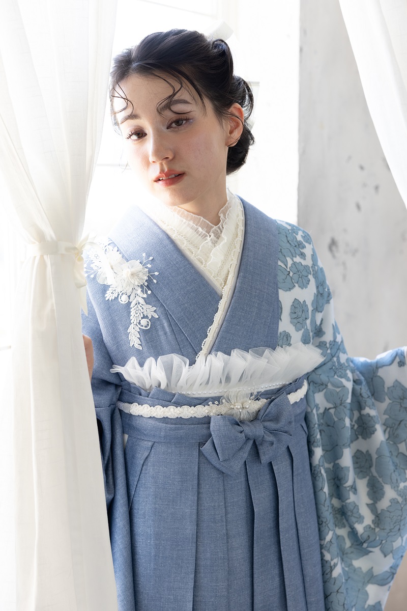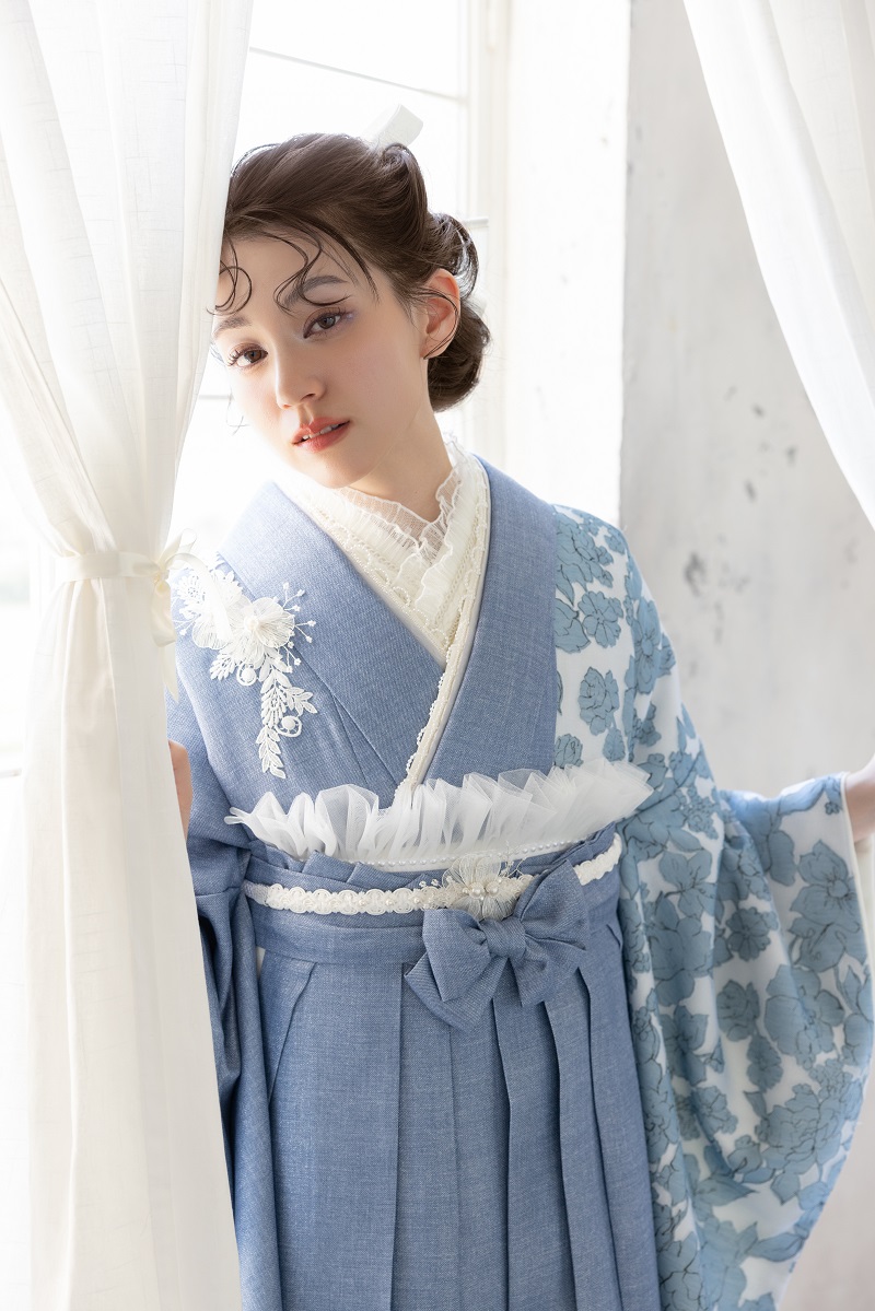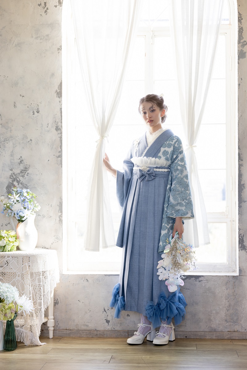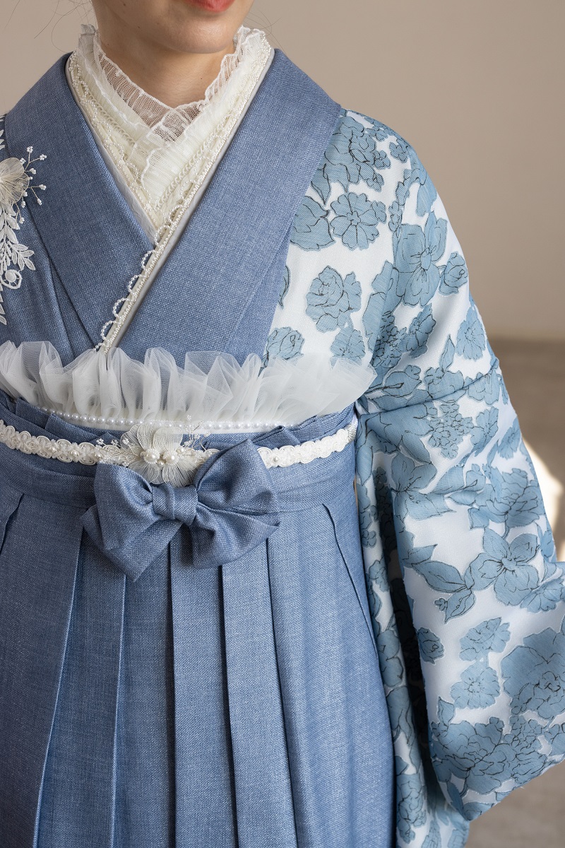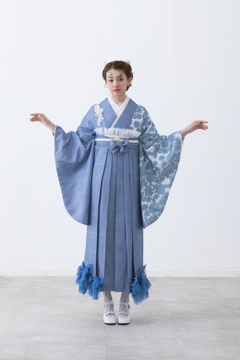 ラフィネモカ二尺袖/卒業袴 ウェッジデニムRM-202/RH-109【ブルー/ブルー】