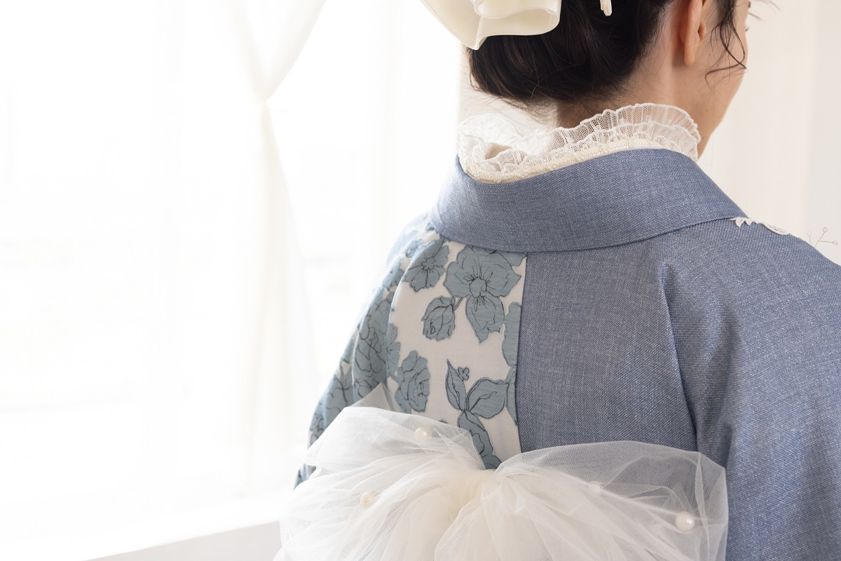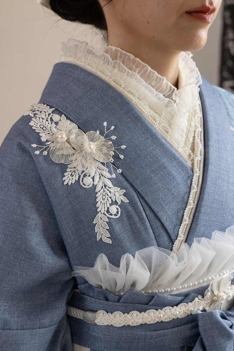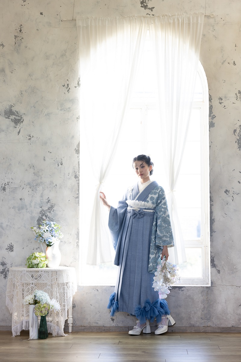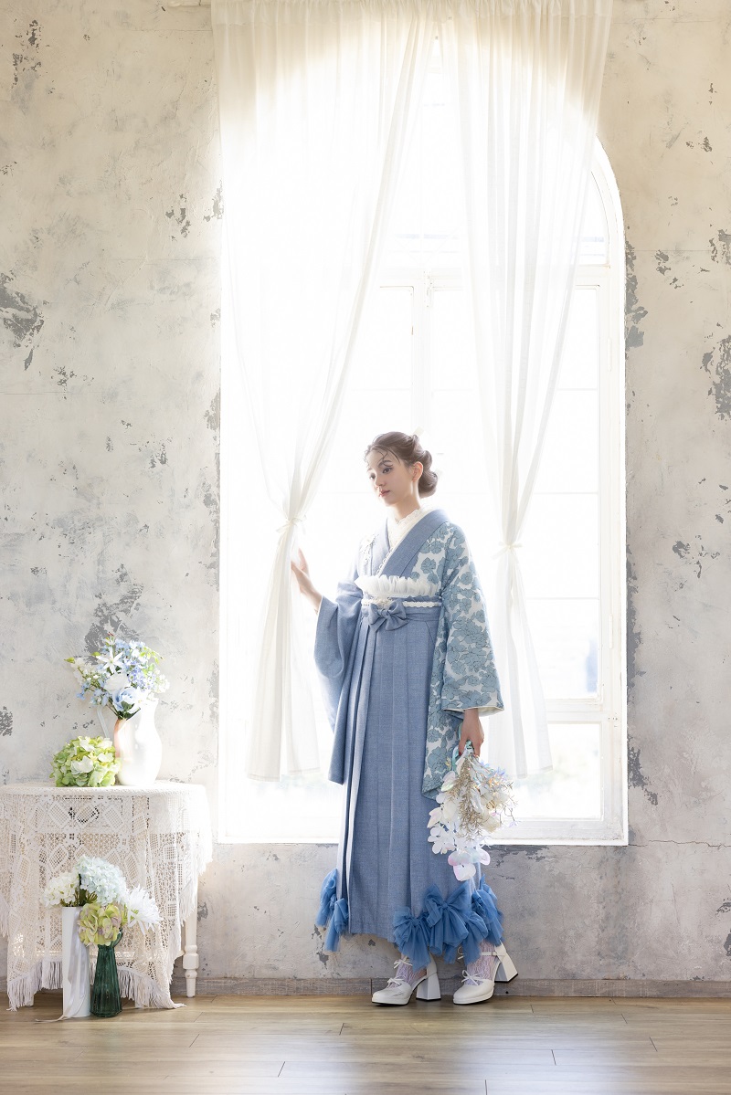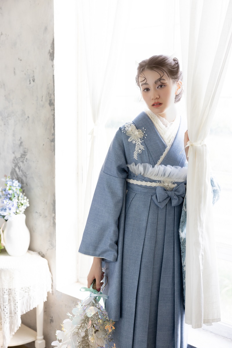 ラフィネモカ二尺袖/卒業袴 ウェッジデニムRM-202/RH-109【ブルー/ブルー】
